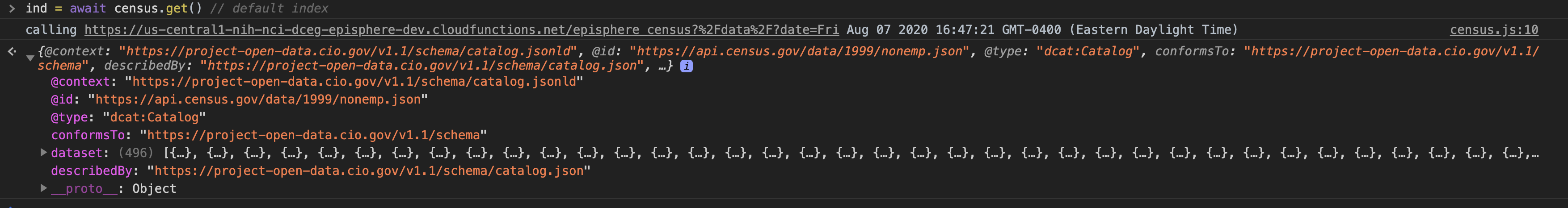 Programatic operation of Census APIs authenticated from episphere domains. Results are rendered in JSON-LD with typing mapped to data.gov's data catalog dcat schema.